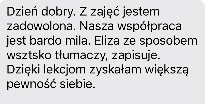 Na naszych lekcjach nie ma głupich pytań; dzięki temu kursanci czują się swobodnie i większość decyduje się na dłuższą współpracę.